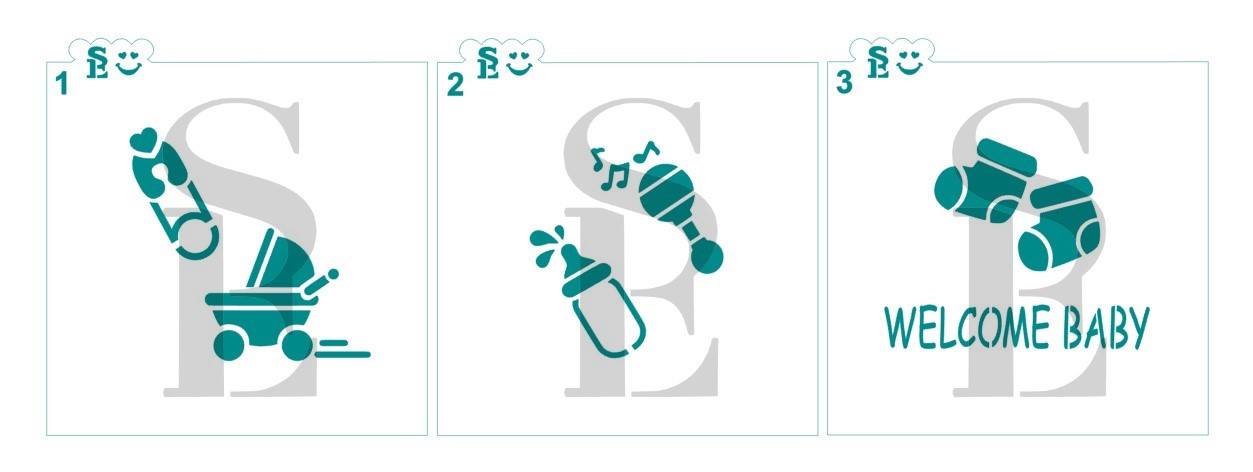 Baby Icons #1-3 Stencil Bundle Or individual Stencil for Crafts & Culinary |