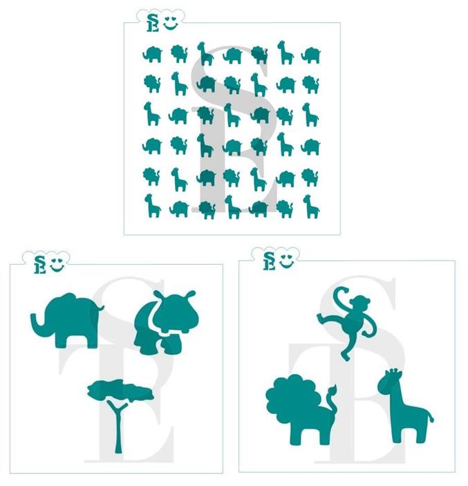 Safari Animals and Background Stencil Bundle for Crafts & Culinary |