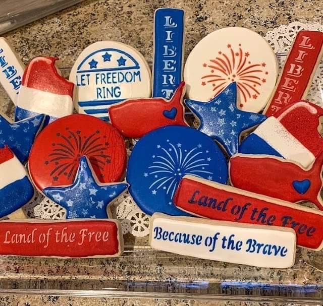 cookie creations using this and other SE stencils by Wish Upon A Cookie TX. She also showcased our: Fireworks stencil Patriotic Cookie Sticks stencil, and our Scattered Stars Background stencil.