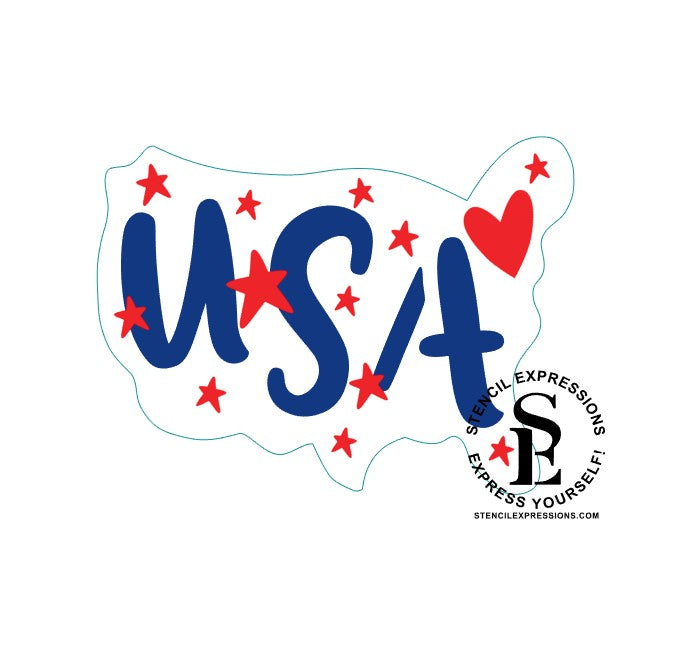 USA Stars Patriotic Stencil with Whimsical US Map Shape / Cookie Template Digital Design