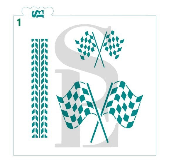 Checkered Auto Racing Flag and Race Car Tire Tracks Stencil for Crafts & Culinary