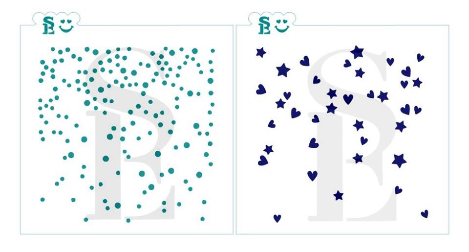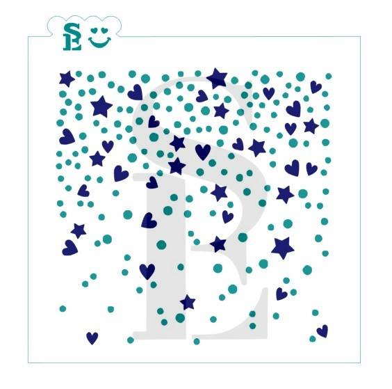 Confetti w/ Hearts & Stars Background, Single or Layered Set Stencil for Crafts & Culinary