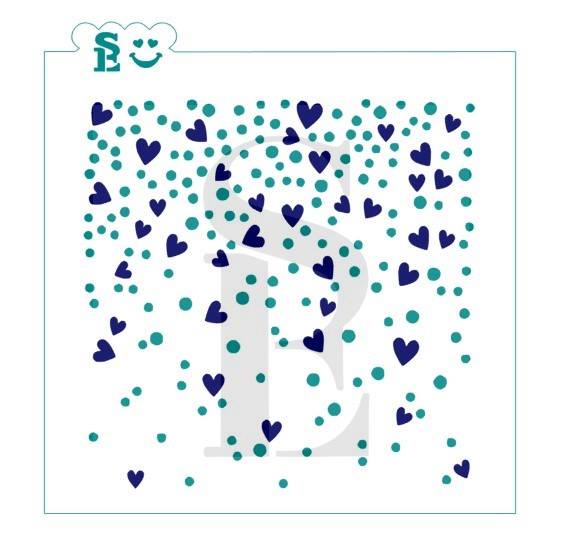 Confetti w/ Hearts OR Stars Backgrounds Bundle, Single or Layered Set Stencil for Crafts & Culinary