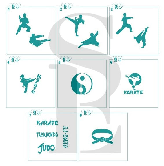 Martial Arts #1-8 Stencil Bundle for Crafts & Culinary