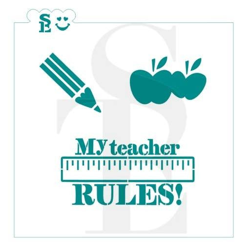 My Teacher Rules with Ruler, Apple, Pencil Stencil for Crafts & Culinary