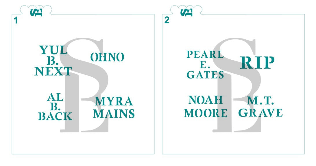 Tombstone Quirky Names Stencils #1 & #2 Bundle for Crafts & Culinary