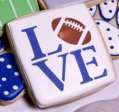 Soccer and Football LOVE cookies created using this SE stencil by Anne at The Flour Box!