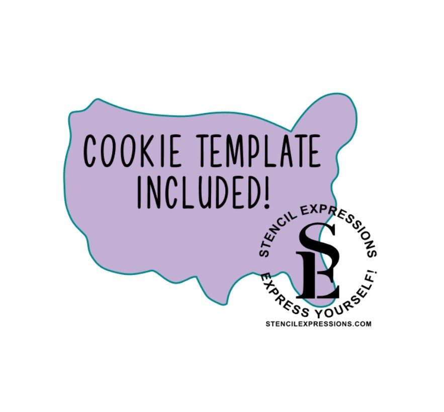 USA Stars Patriotic Stencil with Whimsical US Map Cookie Template For Crafts & Culinary