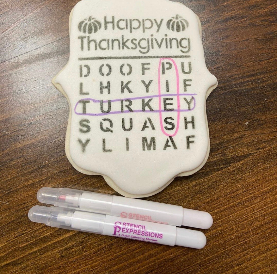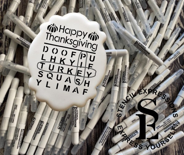 What fun for Thanksgiving festivities, right ?! Pair with some edible food coloring ink markers for an interactive DIY/PYO kit to take to holiday gatherings or create to sell at your pop-up shops! Easily resized to fit your project. More holiday word searches available on our website.